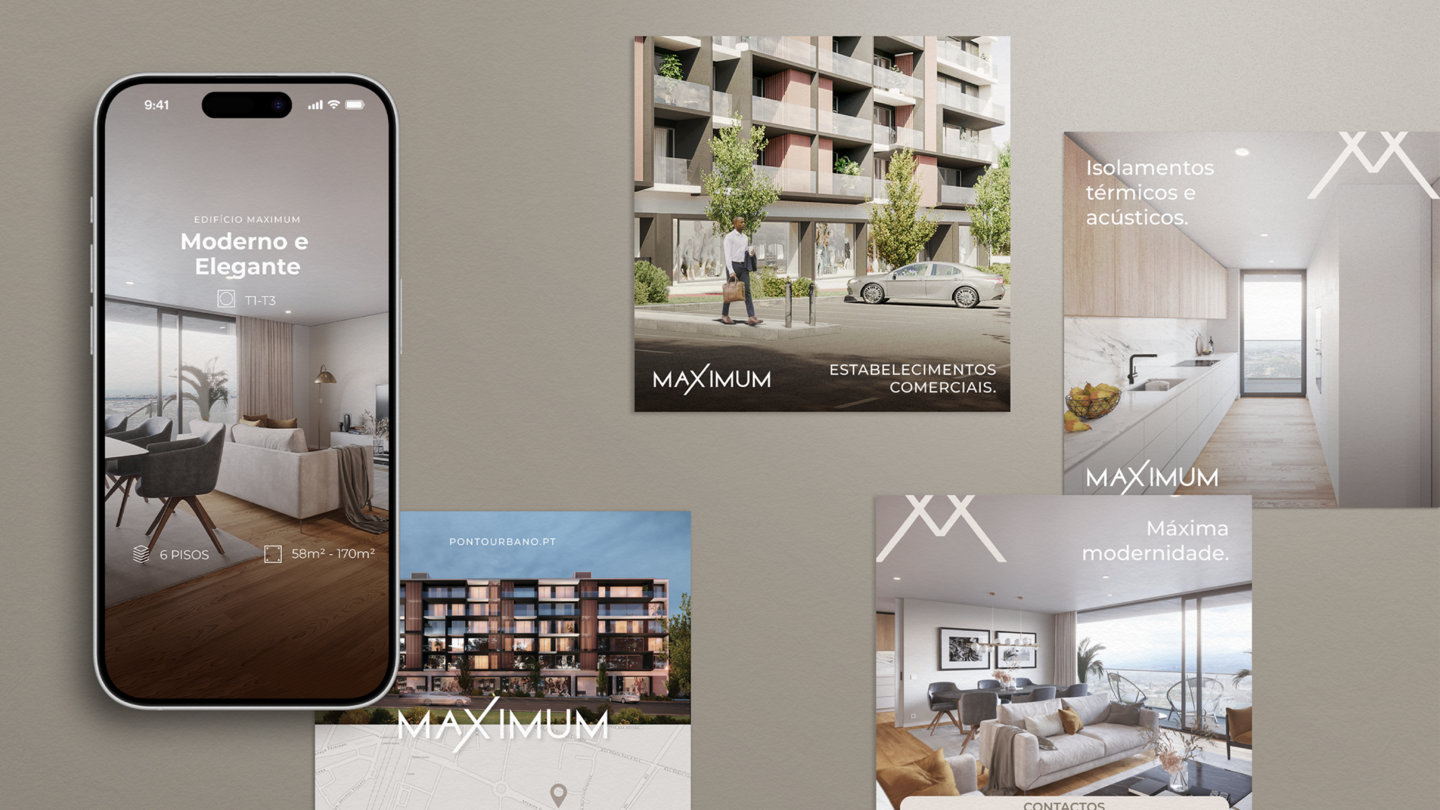 The creative process for MAXIMUM's identity aimed to reflect the large areas of this building, which is unusual for apartments. This action materialized with the creation of the naming, concept and other communication media.