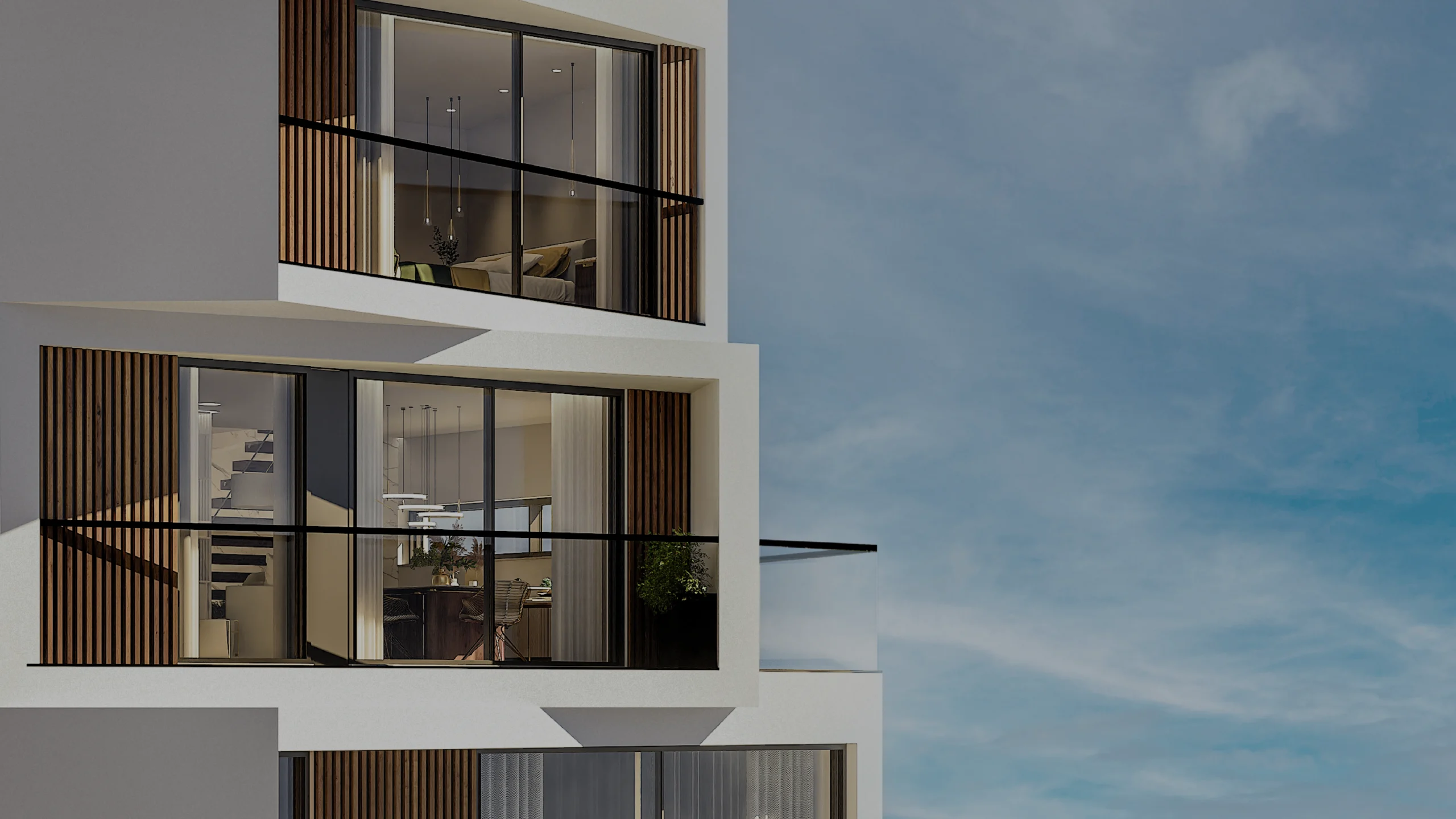 Com apoio nas plantas e mapa de acabamentos do Convexo, surgiu o projeto 3D. A partir dos esboços iniciais nasceu um edifício singular, por dentro e por fora. Com um apartamento por piso, as linhas do Convexo revelam um edifício moderno e que se funde com a cidade. Neste processo de modelação, cada detalhe foi pensado para conferir ao Convexo uma imagem elegante e representativa do que este será na realidade.